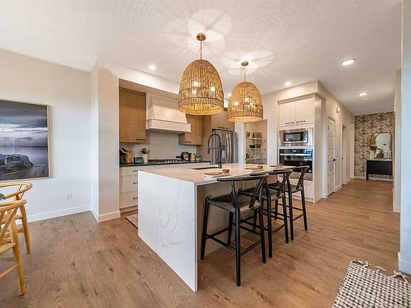 Discover the Denali 6 – a stunning walkout home on a pie-shaped lot backing onto serene green space. Built by a trusted builder with over 70 years of experience, this home showcases on-trend, designer-curated interior selections tailored for a home that feels personalized to you. This energy-efficient home is Built Green certified and includes triple-pane windows, a high-efficiency furnace, and a solar chase for a solar-ready setup. With blower door testing that may be eligible for up to 25% mortgage insurance savings, plus an electric car charger rough-in, it’s designed for sustainable, future-forward living. Featuring a full package of smart home technology, this home includes a programmable thermostat, ring camera doorbell, smart front door lock, smart and motion-activated switches—all seamlessly controlled via an Amazon Alexa touchscreen hub. This spacious design features a main floor flex room, a cozy gas fireplace with floor-to-ceiling tile, and an executive kitchen with built-in stainless appliances, gas cooktop, chimney hoodfan, waterfall island, and walk-in pantry. Upstairs, enjoy a vaulted ceiling in the bonus room, a luxurious 5-piece ensuite with walk-in shower and soaker tub, plus walk-in closets in all bedrooms. Natural light floods through many windows, and outdoor living is enhanced by a rear deck with beautiful views. Photos are representative.