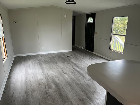 Recently renovated home with new paint on walls, cabinetry , and countertop. New flooring installed throughout the entire trailer. Home is located on a large lot with a great sized yard.