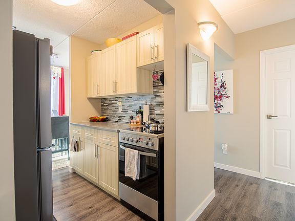 A beautiful place to call home that is a non-smoking property, with large balconies and a tenant lounge it has all that a tenant needs. All Utilities & 1 parking stall are included in the monthly rent.Nestled behind the Travelodge Hotel on a quiet residential street, with walking paths along the riverbank 2 minutes from the front door.