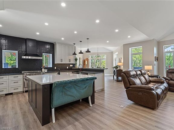 Welcome to your dream home, a serene retreat nestled in Sprucedale. This inviting, custom built home completed in 2024 offers the perfect blend of modern luxury and privacy. Surrounded by mature trees on 3.39 acres and graced by a creek, you can enjoy the peace and quiet of nature and outdoor fun steps from your front door. Sprucedale is a hidden gem in the Almaguin Highlands, while still having quick access to Highway 11 for easy travel to North Bay or Toronto. Outdoor lovers will enjoy easy access to ATV and snowmobile trails, fishing lakes, and the nearby Seguin Trail. Only 20mins to Burks Falls for groceries, dining & gas. 35mins to Huntsville, offering big town amenities; hospitals, shops, and dining. The spacious open-concept main floor greets you with soaring vaulted ceilings and large windows flooding the space creating a bright and airy feel. The heart of the home is the chef-inspired kitchen, featuring floor-to-ceiling cupboards, soft-close drawers, a chic hexagon backsplash, pot filler, a large island with a prep sink, and premium stainless steel appliances. Entertain your friends and family effortlessly in the main living and dining area, with seamless indoor-outdoor living with direct access to the upper deck overlooking the property. The primary bedroom is a luxurious escape, boasting a spa-like 4-pc ensuite bath with a large walk-in shower, a deck walkout featuring a covered area with a hot tub, and a spacious walk-in closet and direct access to the main floor laundry room featuring it's own doggy wash! The lower level highlights a fully finished basement with high ceilings, large windows and a walkout perfect for multi generational living. Complete with 2 bedrooms, a 4-pc bath including a jetted tub, and a rough-in for a wet bar in the family room. Additional features include propane BBQ hookup, ICF from foundation to roof, septic well and propane systems(2023), and rough in for a Generac this home is built for modern comfort and peace of mind.