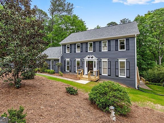 Beautiful 4 Bedroom, 3 full bath, 2 half bath home with fresh exterior paint and two new decks overlooking a peaceful, private back yard. Main level features a large formal living room, formal dining room, and cozy den with fireplace open to the kitchen and breakfast area, with Plantation shutters on all den and breakfast room windows. Upstairs includes a spacious primary suit with garden tub and shower, a private bath in bedroom 2,and a connecting bath for bedrooms 3 and 4. the basement offers a wet bar, half bath, and two spacious rooms ideal for a game room or additional living space, with walk-out access to one of the new decks. Home inspected by Clint sellers with repairs by David Rogers. Conveniently located near the front gate for easy access to shopping and I-75