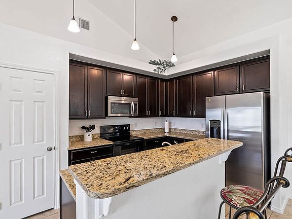 Beautifully kept single-story two-bedroom, two-bathroom home with attached two-car garage in a quiet, charming neighborhood. Impeccably maintained with tile flooring throughout, this home features an open and airy kitchen, dining, and living area with large windows overlooking a fully fenced backyard that backs onto a serene pond shaded by mature live oaks. Enjoy private access to the pond area through a gate in the back fence, perfect for peaceful walks or quiet reflection. The kitchen offers generous cabinetry and counter space, ideal for cooking and entertaining. The primary bedroom boasts vaulted ceilings, pretty windows for natural light, a large walk-in closet, and an attached well-maintained bathroom. The spacious guest bedroom is equally comfortable, with easy access to the second full bathroom. The attached two-car garage includes additional space for storage or a workbench. Outside, the landscaped yard provides a secure, private space to relax or entertain. This move-in-ready home has been lovingly cared for and offers a rare combination of comfort, practicality, and natural beauty. Located in a quaint, established neighborhood with quiet streets and mature trees, it provides a welcoming community feel while remaining convenient to schools, shopping, dining, and amenities. Don't miss this opportunity to own a home where quality, thoughtful design, and a peaceful setting come together so beautifully. Schedule your private showing today and experience the charm and serenity this exceptional property has to offer.
