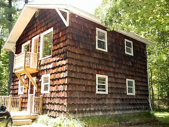 Affordable country zen living. Tranquil wood shingled country cottage set back off quiet road down long driveway on large 3.7 acre lot. Wooded but filled with sunlight. Adjacent to the 900 plus acre Shaupeneak Ridge nature conserve with 9 miles of biking and hiking trails. The home is easily expandable.Original owner is selling the homestead built 1970. Wood floors throughout, Lots of Windows to bring Nature inside. Porches on each level. The Woodstove, "AS IS", on the first level is said to be able to heat the entire house though the owner does not currently use it for primary heating. Gather firewood from your own lot. Plenty of flat land suitable for garden and homestead outbuildings. You're well ahead of the game with two outbuildings that convey with the property. Owner has sold the adjacent lot of 3.2 acres for $60K on September 26, 2016 for Cash. See MLS 20163008. New Paltz address in the Town of Esopus. Location is only 15 minutes from New Paltz and the New York State Thruway, yet a world away in a tranquil setting with no noise from civilization. Also, within easy reach of Metro North Poughkeepsie with quick access to Route 9. Or, head north 15 minutes to all the excitement and activity to be found in the City of Kingston. Woodstock and Rhinebeck (AMTRAK) are only 10 minutes further north and east respectively. SIGN IS UP. PRICE REDUCTION REFLECTS WORK NEEDED. NEW INFORMATION JUNE 6 2017: As Per Tax Assessor, new assessment for house on 3.7 acres is 180000. Total new taxes for house on 3.7 acres won't be confirmed until School Taxes are issued. GUESSTIMATE by assessor office at approximate $33/$1000 of assessment is $5,940 without any exemptions.