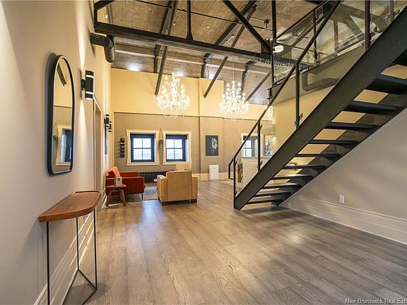 Discover an exceptional penthouse suite at Saint John’s most prestigious condominium, offering over 2,000 square feet of refined living space. This unique residence blends industrial influences with elegant traditional design for a contemporary yet timeless atmosphere. The suite features a spacious primary bedroom with ensuite, a second large bedroom, and a modern main bath. Ideal for entertaining, the open-concept kitchen flows into a bright dining and living area. A gentle staircase leads to a versatile loft with a family room and additional space for relaxation or creativity. Premium amenities include generous storage, panoramic views of the harbour and Bay of Fundy, assigned parking with integrated storage, and extra storage at the parking level. Recent upgrades such as Marvin triple pane windows and remote-control blackout blinds ensure comfort, efficiency, and privacy. Located in Saint John’s most photographed building, at the iconic corner of Princess and Prince William streets, this address has represented elegance since 1877. The well-managed, financially sound condo community guarantees a high standard of living rarely found elsewhere in New Brunswick. Experience luxury, history, and urban convenience—schedule your viewing today.