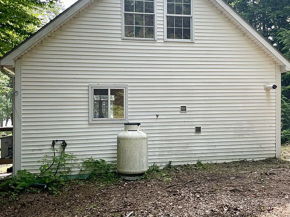 The cottage has bright and open layout, featuring large windows that flood the space with natural light and a spacious kitchen with plenty of cabinetry. There is a first floor bedroom with a bonus room overlooking the front yard with partial lake views. The partially finished loft provides an opportunity for additional sleeping space for guests. Some trim, drywall, and painting work has already been completed. While living here year round, the Seller made many improvements like a heat pump, generator hookup, and new windows, but some projects are not yet finished.