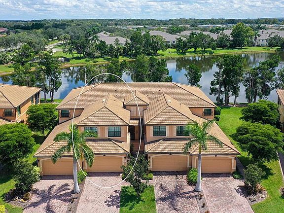 Don't miss this rare chance to own a spacious, upgraded coach home with stunning water views. Located in the exclusive enclave of just 24 homes in Cuddy Cove, this property is surrounded by natural beauty and nestled in the amenity-rich Heritage Harbour community. Enjoy maintenance-free living and serene views in a thoughtfully designed, bright & open layout featuring tall ceilings, crown molding, over 2,100 sq ft including a formal dining room, breakfast room, and a split-bedroom design with generously sized bedrooms and conveniently located laundry room. Built in 2015 with block construction and features hurricane-impact windows & sliding doors for added peace of mind. The living areas boast ceramic tile flooring laid on the diagonal and upgraded laminate flooring in the bedrooms makes maintenance a breeze. Recently painted walls and trim add a fresh touch. The 22x10 private lanai, accessible from both the living area and primary bedroom, is perfect for relaxing and soaking in the tranquil views. The roomy primary suite is a true retreat with space for a cozy sitting area, TWO walk-in closets, and an ensuite bath featuring a soaking tub, dual sinks, a separate shower, and a private water closet. The kitchen is stylish and functional, with newer stainless steel appliances, wood cabinetry, ample counter space, and a closet pantry. Storage is plentiful throughout the home, much more than expected, with additional closets near the family room & dining room, and a large lower-level closet near garage entry. The extended 2-car garage with an epoxy-painted floor includes tandem space for a golf cart (or potentially a third car) or room for a workshop and additional storage. Just a short stroll away from this home, you'll find a soccer field, Little League baseball diamonds, a Frisbee golf course, a Tot Lot, and dog park. Golfers will appreciate the nearby Heritage Harbour Golf Club, now open to the public. The home is in a great location for shopping and dining with the Heritage Harbour entrance boasting the new "Market Place," featuring a mix of retail businesses, including popular eateries like LongHorn Steakhouse and Miller’s Ale House, alongside major retailers such as Costco Wholesale, Target, Hobby Lobby, Academy Sports, and more. All of this and NO CDD fees! Schedule your private showing of this exceptional coach home today!
