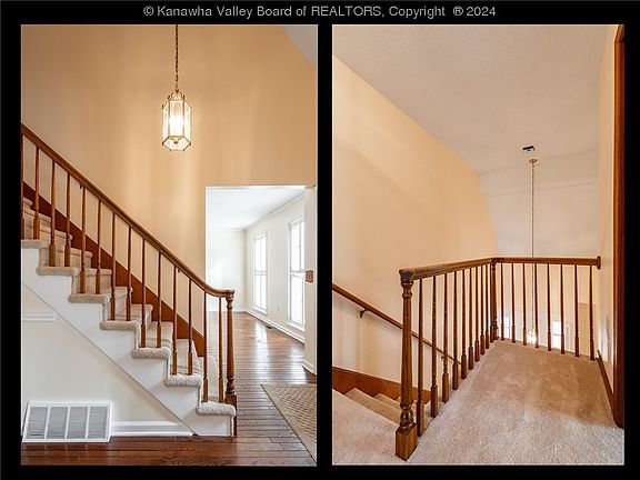 This is one super cute home and the view from the eat-in-kitchen and back decks on this house is one of the nicest I've ever listed. This three bedroom, two full and two half baths home has a lot of character in a gorgeous, setting. The cozy fireplace is in the family room which also has a view of the wooded valley. In the winter there's even a peekaboo view of the Coal River below. Partially finished basement with half bath has many potential uses. The upstairs bedrooms are spacious with the primary en suite and a second full bath on the bedroom level as well. Stainless appliances and an extra refrigerator in the oversized garage. Steep driveway but the view at the bottom is worth it.