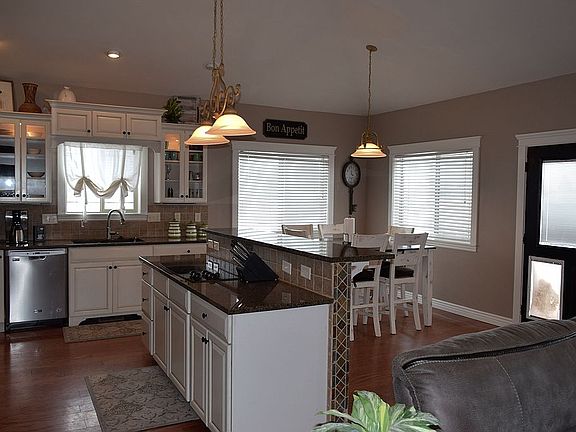 This beautiful home has plenty of room for everyone to spread out! From the front entryway, you'll have a unique wood accent wall and tile flooring. Hardwood flooring extends through the living room and kitchen. You'll love the windows, vaulted ceiling, built-ins, and the cozy gas fireplace! The kitchen has a large island with bar, double ovens, granite countertops, and a door off the dining room for entertaining in the backyard. There is a convenient mudroom, main floor laundry room, and 1/2 bath off the kitchen. The master suite has a bay window, a large bathroom with plenty of cabinetry, separate shower and tub, and a large walk-in closet. You'll have 2 additional bedrooms, a 1/2 bath, and a full bath with granite on the main floor. Head upstairs to an adorable sitting area and an additional bedroom. Head downstairs to the perfect basement entertaining space! You'll have a huge family room with space for a game table, sitting area around the fireplace, a separate theater or movie area, and space for a desk or office. You'll have 3 more bedrooms downstairs, with walk-in closets, and a full bath. The backyard is perfect for entertaining with a deck, large patio, and fully fenced yard. There is a 3-car attached garage and a large driveway for additional parking and guests.