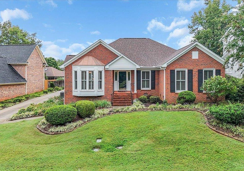 Welcome to 115 River Oaks Dr. You enter this 3/2 all brick home into a foyer with the dining room with floor to ceiling bay window to the left. This leads to the kitchen with granite countertops and stainless appliances, all connected to a large breakfast room with storage and built-in desk. Connecting the foyer and the breakfast breakfast room is the great room with vaulted ceiling, gas fireplace, & French doors leading out the large screened in porch. Hardwoods throughout the main living spaces. Down the hall three bedrooms await, including the primary with renovated en-suite bathroom & walk in closet. Two additional bedrooms, full bathroom and a large laundry room complete the interior. New carpet installed in bedrooms in 2022 and just professionally cleaned. Garage connected to screened in porch added in 2012. Small deck off porch. Located across from pool and tennis courts.