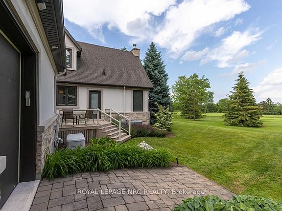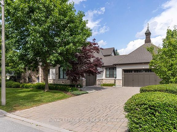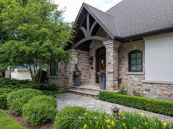 STUNNING EXCLUSIVE GOLF COURSE FAMILY HOME! Beautiful one-of-a-kind 4 bedroom home backing onto the St. Catharines Golf Club by award winning Pym & Cooper, this unique home is truly an architectural & design masterpiece featuring the highest quality craftmanship and impeccable finishes! Features dramatic glass Atrium with 20 ft. ceiling, floor to ceiling windows allowing an abundance of light and gorgeous nature views. The Atrium features heated floors and a custom water feature, perfect for entertaining! (This room could be re-designed as a STUNNING Livingroom) Surrounding the Atrium are large principal rooms including a magnificent foyer with soaring vaulted ceiling, large formal Dining room, Greatroom with Kitchen by Enns, 2 islands, quartz, coffered ceiling, high end appliances, Livingroom with fireplace, custom mantle surround. Main floor den/office, Powder room and Sunroom. Main floor Primary bedroom with huge dressing room, 5 pc spa like ensuite w/steam shower, exercise room. Second floor bedroom with w/i closet, ensuite and Juliet balcony overlooking the Atrium and golf course views. EXCEPTIONAL basement offers hours of family fun w/heated floors thruout, large Games Room, Recroom with Golf Simulator/Theatre room, 2 spacious bedrooms, 2 baths, walk up to 3rd garage. 4th bedroom currently in use as an office. Beautiful stone exterior has huge curb appeal. Triple garage with electric car charger and rear overhead door open to backyard and golf course. Sep. entrance to lower level makes for an IDEAL IN-LAW. Beautiful hardscape and pool size back yard w/breathtaking views! Located in sought after Old Glenridge, walking distance to downtown, Meridian Arena, PAC, Golf Club. Close to excellent schools, Ridley College, Brock U. all major highways, hospital, parks, hiking trails, and wineries. Live your best life in this outstanding home! **NOTE Electric golf cart and Golf Simulator are included!
