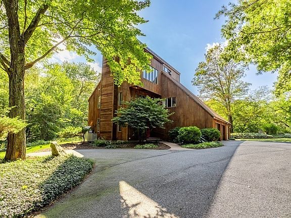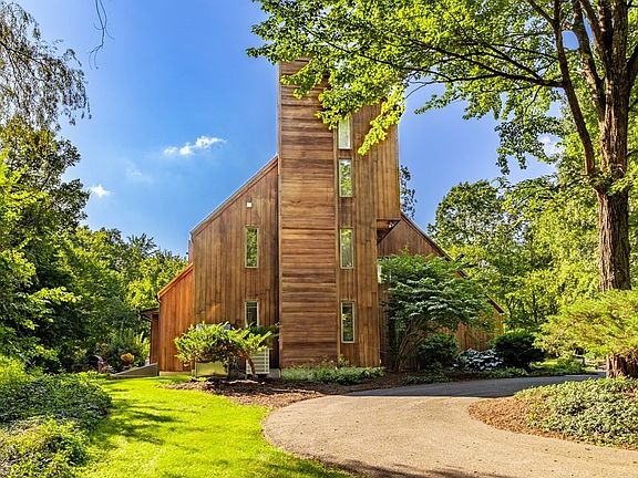 Thoughtfully designed, custom built Contemporary set well back from the road & nestled on 3.5 tranquil acres will captivate your imagination & steal your heart! Huge windows throughout frame exquisite verdant views & flood all 3 levels of this spectacular home with natural light. The cabinet-packed kitchen with dining area opens to a sun-drenched family room, dining room & living room each graced with handsome hardwood floors. Unwind in the main bedroom suite boasting a walk-in closet & private bath. Explore the endless possibilities of the expansive & versatile 3rd floor artist studio. Enjoy the convenience of a storage-laden laundry/mudroom, the ease of a 2-car attached garage with workshop addition & the benefits of an incredibly energy efficient home. Imagine gathering on the sprawling patio overlooking perennial-filled gardens, basking in the beauty of serene pond views & relishing the peacefulness of a babbling brook in your backyard sanctuary. A treasure to behold!