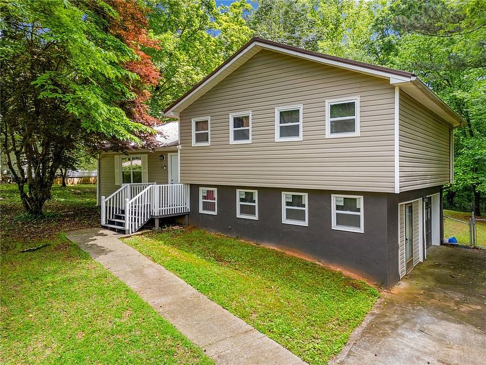 Welcome home! This charming 3-bedroom, 2-bathroom home is ready for its new owners! The main level features an open floor plan with a newly remodeled kitchen, granite countertops, upgraded lighting, and an oversized breakfast bar. The dining area, which comfortably seats 8, is adjacent to the sunroom and deck, making it perfect for entertaining. The family room boasts a stone fireplace and a vaulted ceiling. All main living areas have been updated with LVP flooring. The spacious master bedroom includes double closets, and the master bath features a shower. Large secondary bedrooms complete the upstairs. Downstairs, you'll find a laundry room and an additional finished room that can serve as a bedroom, office, recreation room, or playroom. The large, fenced-in backyard offers plenty of space for kids, family and furry friends! Country living at its best while also convenient to shopping, restaurants and the Greenbelt.