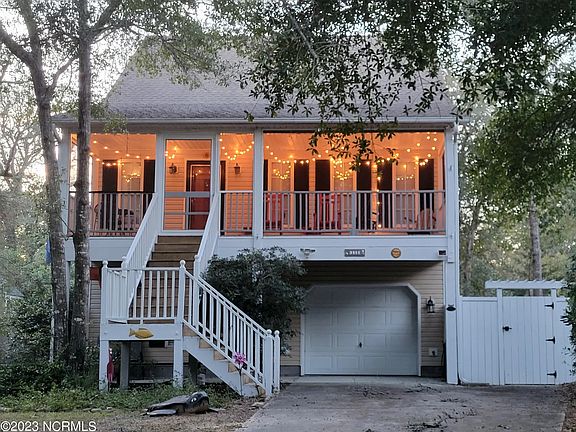Enter the large screened in porch on the front with plenty of space for a table and chairs and patio furniture for relaxing and listening to the ocean waves. The living area has vaulted ceilings, a fireplace and built in bookcases. The updated kitchen has plenty of room for those family gatherings boasting an island and a spacious dining area. The bath and laundry room are conveniently located close to the back door that opens up to the deck and fenced in back yard with a koi pond. This makes it convenient after you have been to the beach to bring in those sandy towels and wet bathing suits. Upstairs are 2 large bedrooms with a jack n jill bathroom. The lower level has a separate front entrance with a bedroom, full bath with barn door, small sitting area and a garage with a door to the outside back yard. The back yard is fenced in with lots of space for your pets or for outdoor relaxing, grilling, firepit or activities.