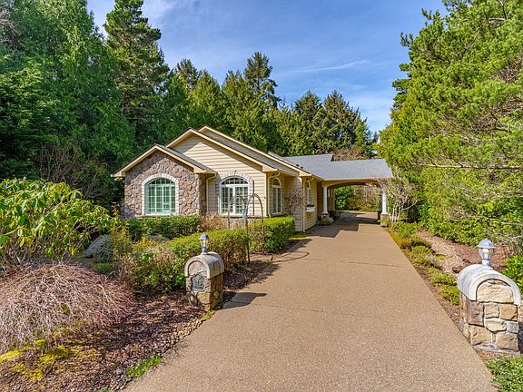 Custom quality home on a oversized maturely landscaped lot within the desirable community of Little Whale Cove. Incredible architecturally designed with a porte-cochere covered entrance, cultured stone exterior accents, arch doors and windows. Other features include fresh interior paint, hardwood floors, hand picked tile, central vac system, surround sound, wrap around ironwood deck, 3 car garage and tons of storage! You will enjoy cooking in this spacious kitchen with custom cherry cabinets, granite counters, trash compactor, island w/an additional sink and butcher block. Primary Suite w/brand new carpet, large walk-in closet, tiled bathroom, steam shower w/body jets, Jacuzzi tub, 2 separate sinks and his & her own toilet stalls. LWC Community amenities include a community center with indoor pool, saunas, Jacuzzi, indoor & outdoor tennis courts, on-site security & surveillance, over 3 1/2 miles of walking trails along the ocean front, through the ancient cedar forest and down to the only private beach in the State of Oregon ''Little Whale Cove.''