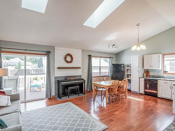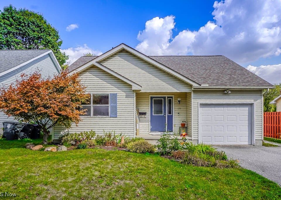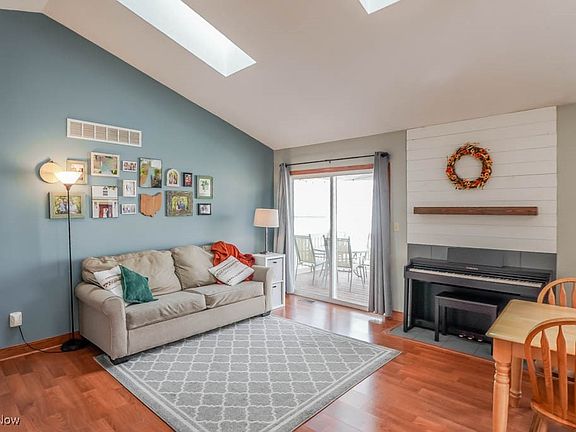 You’ll love this nicely updated 2 bedroom, 2 bath home in Akron’s Wallhaven neighborhood, close to parks, restaurants, and shopping! Vaulted ceilings and skylights fill the main living area with natural light, where laminate flooring and a wood burning fireplace create an inviting space to unwind. The kitchen includes all appliances, granite-look countertops, and a movable island that adds extra prep and serving space. Sliding doors open to a freshly refinished deck with a new floor, perfect for relaxing or entertaining outdoors.