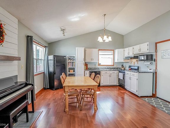 Movable islandFinished lower levelPrimary suiteVaulted ceilingsOpen ceilingsGranite-look countertopsFenced backyard