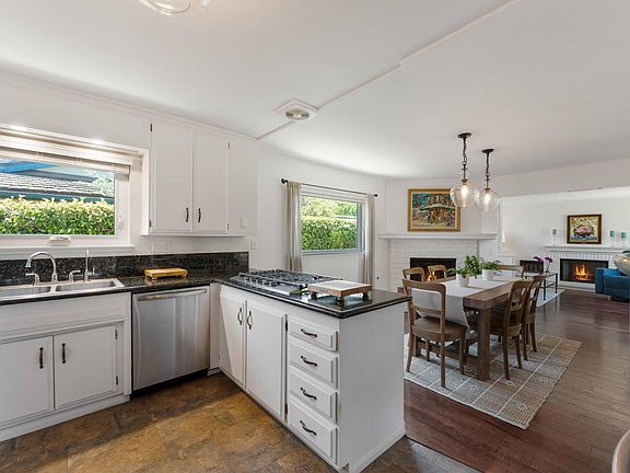 Tucked on a quiet cul-de-sac, this move-in-ready 4-bed, 2-bath Mid-Century Ranch-style home offers over 1,700 sq. ft. of stylish, single-level living. New windows, vaulted ceilings, & flexible spaces enhance the interior, including a bright living room w/ garden views & a 2nd-living area w/ a cozy fireplace & sliding doors to the backyard. The kitchen features stainless appliances & opens to a dining room & fireplace. Laundry area w/ side-by-side washer/dryer adds convenience, & a 2-car garage w/ extended driveway offers ample parking. The spacious backyard is a peaceful retreat w/ patio space, BBQ area, fruit trees, & room to dine al fresco. Seasonal blooms & vibrant landscaping invite birds, butterflies, & hummingbirds. All just minutes from More Mesa, Trader Joe's, UCSB, & Goleta Beach