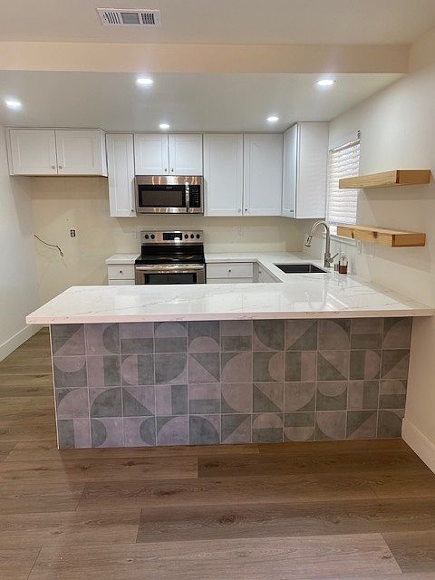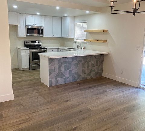 Large lotAccess to the backyardStainless steel appliancesClean white cabinetsModern updated home