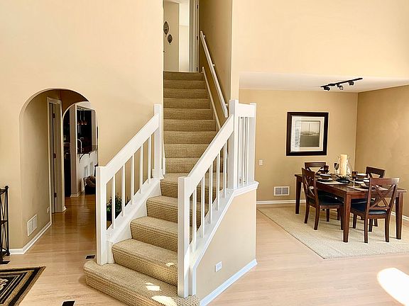 A gorgeous home with extensive upgrades in a maintenance-free community of single family homes just minutes from highways, shopping and dining. This is a beautiful community with professionally maintained exterior maintenance and landscaping. One low monthly fee of $310.00 includes all exterior maintenance (board replacement, fence repair and exterior painting), all landscaping maintenance, snow plowing of your driveway and sidewalks and much more. This home offers a heated side load garage, an open concept floor plan with plenty of natural light, vaulted ceilings and skylights, a first floor office, a second floor laundry, and full basement and very private beautifully landscaped backyard to enjoy your evenings. Just a few highlights of this home include: Hardwood flooring throughout the entire first floor, including foyer, living room, dining room, office, family room, kitchen, breakfast area and half bath. Dramatic two-story foyer with inlaid marble and updated lighting fixtures. Soaring cathedral ceiling living room boasts two large skylights and ceiling fan vaulted first floor large office with custom lighting and window view spacious 20x16 family room with custom Tech lighting, eating bar looking into kitchen, and access to large patio and private backyard with solar lighting accents. Huge remodeled gourmet kitchen includes granite counter tops and backsplash, all stainless steel appliances, Dacor gas/electric oven with built-in vent/hood, large center island, built-in coffee/wine bar, recessed lighting and two large pantries adjoining breakfast area offers views of entry and front yard and half bath with updated vanity vaulted master suite with huge 10x7 walk-in closet and master bath. Luxurious master bath includes vaulted ceiling with skylight over large soaking tub, updated double vanity with granite countertops, newly renovated walk-in shower, and 12 inch ceramic flooring spacious 2nd and 3rd bedrooms with ample closet space and neutral decor, 2nd floor laundry room option fully finished, also perfect for large walk-in hall closet (washer/dryer hook-ups also in the full basement). Huge full basement has been partially finished with wood laminate flooring and painted neutral walls. This partitioned basement includes a laundry/utility room, a gorgeous workshop finished with extensive kitchen grade cabinets and custom wood walls, and includes large open areas great for work-outs, open living space and lots of storage. Gorgeous very private backyard, fully fenced with large patio and meticulously maintained mature landscaping (all perennials). Includes solar lighting throughout for enjoying evenings in the backyard and soaking in the hot tub. Your new home includes much more than the list of amenities, it has been meticulously maintained and extensively upgraded inside and out. Includes all upgraded lighting and lighting fixtures with dimmer switches throughout, 2" white wood blinds on almost all windows, high efficiency HVAC system, sump pump and back-up pump installed, garage door opener, washer/dryer and water heater have all been replaced recently. Roof and skylights replaced within last ten years. Exterior of the house painted last year. You must see this home to appreciate all it has to offer. Showings are available by appointment only with 24 hour notice for pre-approved buyers. For appointments please call Kim at 630-965-3348.