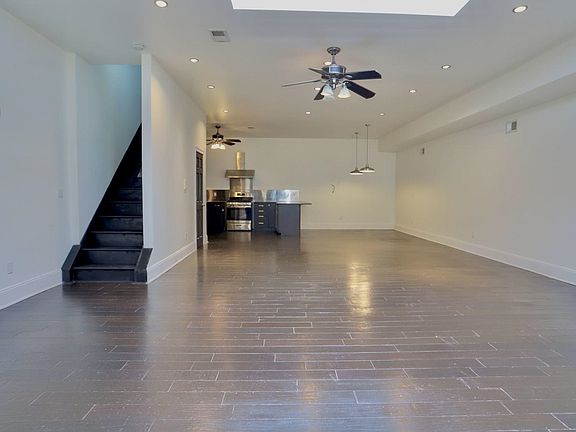 Incredible one of a kind open and spacious property in Jersey City heights! Home features a covered garage allowing for 2 car parking, 11 ft ceilings, huge 8x8 skylight, central ac/heat, in unit washer/dryer, updated appliances and granite countertops. The living room has 1500sq ft open concept perfect for entertaining and a large second floor bedroom with a walk-in closet and ensuite bathroom. This is a single family duplex home close to all public transportation, parks and restaurants.