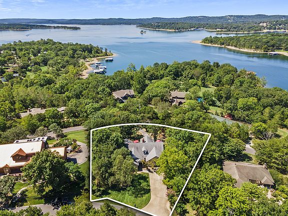 Mic drrrrrop! Looking for that perfect lake escape offering both the epic location just minutes to all the conveniences of Branson, TWO major lakes, crystal clear Table Rock & pristine lake Taneycomo, popular Moonshine Beach, State Park Marina, & w/ all the HGTV bells & whistles, lake view, oversized backyard for the kiddos & fur babies, a bag of spicy cool ranch Doritos, & ready to jump on #tablerocklake at a moments notice?! Well buckle up buttercup, summers not over & there's plenty-o-lake action still to be served up! Perched perfectly in highly coveted Patterson Duck Club, discover this little slice of heaven on earth. The inside story: be instantly welcomed by beautiful foyer & wide open floor plan boasting oversized living to dining area large enough to accommodate even the biggest family gatherings, chef's kitchen w/ corian counters, pantry, durable easy to clean ceramic tile, & loads of storage & counter space making entertaining & dinner prep a breeze. From formal dining, step out to gorgeous all-seasons/Florida room w/ lake views & 2 spacious back decks, perfect for summer bbqs, endless stargazing & breathtaking sunsets masterfully painting the sky over Table Rock, the perfect way to end each glorious day. Back inside, expansive owner's en suite provides your own spa retreat w/ walk-in shower & corner garden tub ready to soak the day away, loads of natural light through oversized picture windows in the bedroom w/sunny office & dual walk-in closet. Split floor plan also offers a spacious second bedroom, full bath & laundry on the main level. Downstairs discover enormous 2nd living space w/ walk out to covered concrete patio, huge workshop, 2 more spacious guest bedrooms, full bath, & tons of partially finished storage space ready for your imagination to finish out! Home also boasts: Life proof vinyl flooring, composite decking, 2 wood burning fireplaces, Anderson windows, wet bar, firepit, low HOA dues & so much more! New memories begin here @ Sherman Way.
