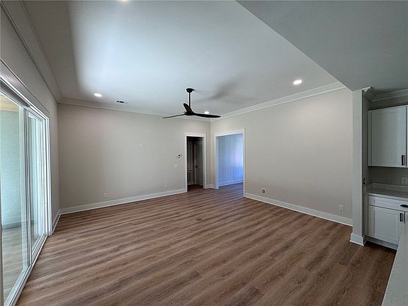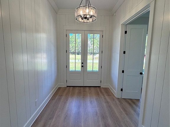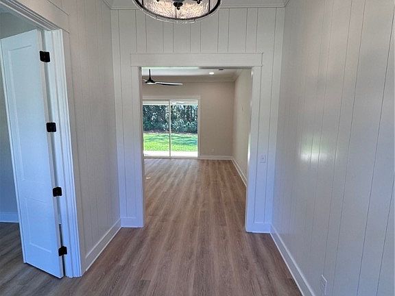 Welcome to this thoughtfully designed 4-bedroom, 2-bath corner-lot home tucked into the rear of the development, offering privacy, minimal traffic, and a serene natural setting. LVP flooring flows throughout the home, complementing a kitchen that is a chef’s delight with stainless steel appliances and abundant pull-out base cabinets for easy storage of pots, pans, and everyday essentials—no more bending or digging to reach the back of a cabinet. A well-planned walk-in pantry functions like a butler’s pantry, featuring base cabinets, counter space for the microwave, and custom shelving. The dedicated dining room provides a warm setting for meals, while the laundry room includes upper cabinets, a clothes rod, and a base cabinet for added convenience. Cooking is elevated with a vented range hood that vents through the roof, not just a simple under-microwave filter. The primary bath invites relaxation with a free-standing soaking tub, a tiled shower, and a spacious walk-in closet. Practical features continue in the side-entry garage, which is larger than typical 20x20 garages and includes a front-window pop-out for tool storage without compromising parking space. Pull-down stairs provide attic access, with plywood flooring over part of the garage for easy storage. Both the front and rear porches are generously sized, perfect for enjoying the tranquil setting. Additional touches include a single, easily accessible air filter located in the hallway—no ladder required—and striking full shiplap walls in the traditional foyer, which creates a welcoming entrance that separates the greeting space from the open living areas. This home combines thoughtful craftsmanship with practical upgrades, offering comfort and style that is truly hard to find!