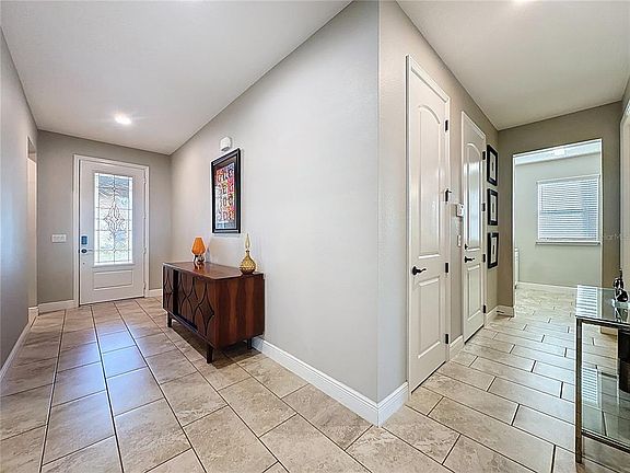 Live Your Best Life in This Resort-Style Retreat! Step inside and feel the positive energy the moment you enter the grand, wide foyer that opens into a bright and airy open-concept floor plan, the perfect setting for effortless living and unforgettable entertaining. Timeless plank tile flows seamlessly throughout the main living and kitchen areas, creating a modern, cohesive design you’ll love coming home to. Designed with efficiency and comfort in mind, the home features energy-efficient dual-pane, Low-E windows plus natural gas for the heat, hot water heater, stove, and dryer, delivering year-round savings and reliability. The kitchen takes center stage with a large granite island, abundant white cabinetry, generous eating space, and gleaming stainless-steel appliances. Light, bright, and beautifully designed, this is where everyday moments shine. Your primary suite is a serene sanctuary featuring a stylish tray ceiling and a luxurious spa-like ensuite bathroom complete with two separate vanities, a spacious walk-in shower with a built-in grab bar and heavy frameless glass door, a private commode room, and a large walk-in closet. A secondary bedroom offers its own private ensuite, including a vanity, sink with granite counter, and a soaking tub/ design, energy efficiency, and low-maintenance luxury—exactly what resort-style living is all about. shower combo, providing comfort and privacy for family and guests. A versatile Bonus Room offers endless possibilities for an office, fitness studio, craft room, or additional sleeping space.. A convenient Powder Room is ideal for visitors, and the laundry room features natural gas connections, a washer and dryer, and built-in storage. Step outside to the covered lanai overlooking a huge, fully fenced backyard, a rare, spacious outdoor retreat perfect for pets, gardening, relaxation, or future enhancements. This home beautifully blends modern comfort, thoughtful design. guard-gated, resort-style community offers more than just a home, it delivers a lifestyle! The HOA covers cable, high-speed internet, security monitoring, and landscaping/ lawn care so you can focus on enjoying your time. At the heart of it all is the spectacular 57,000 sq ft Magnolia House, where you’ll enjoy Member-exclusive restaurant and bar with live entertainment. Indoor/outdoor heated pools & a state-of-the-art athletic club Artisan studio, poker room, culinary kitchen, and creative spaces. Sports courts for tennis, pickleball, bocce, billiards & virtual golf,50+ active, member-led clubs for every hobby and interest. A show-stopping Event Center with a stage and professional AV setup. This isn’t just a home, it’s a lifestyle upgrade where you’ll find connection, wellness, excitement, and belonging every day. Conveniently located 45 minutes to Theme Parks including Universal and Disney World and Orlando International Airport, 1 ½ hour to Beaches and Port Canaveral Cruise Terminal. This isn’t just a home — it’s a lifestyle upgrade. Live your BEST LIFE at Trilogy!