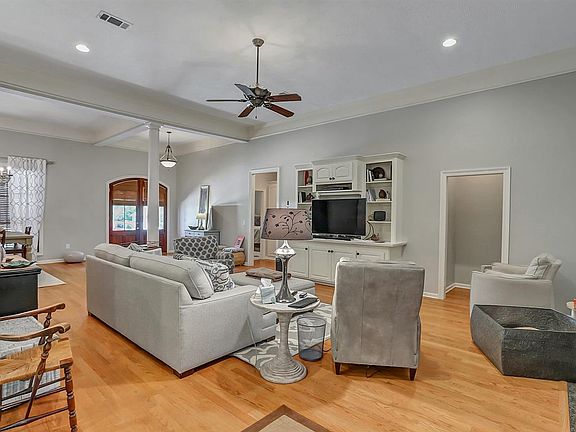 4 or 5 bedrooms 3.5 baths, Depending on use of the upstairs bonus room. This house has a brand new roof with a 25 year warranty and has been freshly painted inside and out. The front yard sprinkler system provides the moisture needed to maintain the beautiful landscape. openness - family room and formal dining room are open to each other- all with beautiful wood floors. kitchen has double ovens, a smooth cooktop (is plumbed for gas and can be converted), a built in microwave, dishwasher, two pantries - 1 built in cabinet and one large closet pantry. There are 3 bedrooms and 2 full baths on one side of the home with the back bedroom having a private bath & large walk in closet. A large master bedroom with 2 large his and hers walk in closets, double vanities, whirlpool tub, separate shower. Upstairs is a large bonus room with a half bath that is plumb ready to install a shower, or use as is with the bar area and make it an office or media room. The back patio is covered to keep you cool and has TV hanging, ready to watch football. A freshly painted deck off the patio extends the patio for more space. The back yard has been landscaped with rock beds to allow easy and low maintenance.