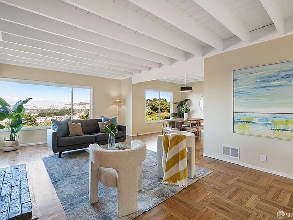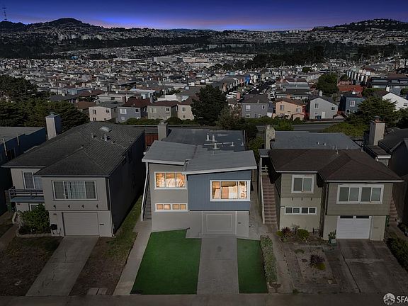 Nestled in the desirable Westlake District, this spacious 3-bedroom, 2-bath home offers 1,835 sqft of versatile living with sweeping City views. Step into a bright open-concept living space where the inviting living room features a painted brick fireplace, ceiling beam accents, and refinished parquet floors, while large windows frame serene views and fill the home with natural light. The adjoining dining room flows seamlessly into the kitchen. Down the hall are two generously sized bedrooms, full bath and ample hallway storage. The lower level, added with permits, expands the home's functionality with a family room complete with a wet bar and double French doors that opens directly to the backyard patio and lawn. A third bedroom and a newly added bathroom makes it a perfect space for guests or home office. An additional flex space with built-in cabinetry, a laundry area, and abundant storage provide room to grow and customize. Completing the home is a one-car garage plus driveway parking. Minutes from multiple Shopping Centers, Recreation areas, Golf Courses, and easy access to HWY 35, 280 and Daly City Bart makes this home ideal for those seeking a balance between peaceful suburban living and convenient city access.