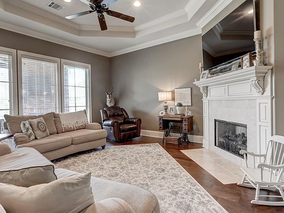This beautiful, meticulously maintained home is located in the highly desired subdivision of Cypress Meadows. The home is situated on a large lot in the cul-de-sac with 3-bedrooms, 2-bathrooms and nearly 2,000 square feet of living space. The moment you enter you'll notice the spacious layout and attention to detail. Soaring, decorative ceilings, triple crown molding, large windows, 2 fireplaces, computer nook, tons of storage space and custom cabinetry throughout are just a few of the details you'll notice about the home. The living room is a nice size with views of the backyard, a gas fireplace with decorative mantle, a single octagon tray ceiling, and triple crown molding. The kitchen boasts tons of cabinet space, a large island, 3cm granite counter tops, hidden spice + pan racks, and stainless appliances. The large master bedroom has a double tray ceiling, oversized walk-in closet, and attached master bathroom complete with jacuzzi tub, walk-in shower, and dual sink vanity. Across the house are the additional two bedrooms & bathroom - the bedrooms are a good size with large closets. The back patio & yard is perfect for relaxing or entertaining guests complete with a gas fireplace, extended cement patio, 4 mature crept myrtles, all fully fenced in! Additional features of the home are the oversized two car garage with storage room, extra long driveway, and a 30-year architectural shingle roof. Schedule your showing today to see all the amazing things this home has to offer!
