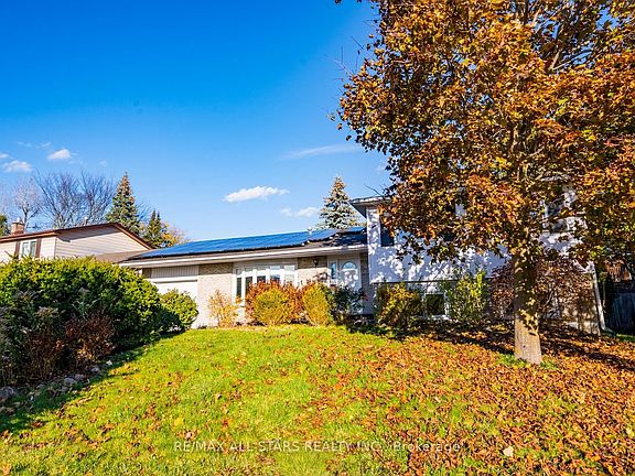 Discover a home filled with charm, space, and personality in this well maintained 3-bedroom, 2-bath side split. Perfectly situated on a pie shaped lot, there's room to entertain, garden, or simply relax and enjoy the privacy created by mature trees. Inside, natural light pours through large windows, brightening the spacious living and dining rooms. The flow between spaces makes entertaining easy while maintaining that cozy, welcoming feel. The kitchen offers a classic design with plenty of cabinet and counter space, along with a breakfast nook overlooking the backyard - ideal for casual meals and conversation. The upper level features three well sized bedrooms and a 4-piece bathroom. The primary overlooks the backyard, providing a restful space to retreat at the end of the day. On the lower level, a warm and inviting family room awaits - complete with a beautiful brick fireplace, pot lights, and above-grade windows that enhance the airy feel throughout. The unique rock-climbing wall adds a playful touch, while the full bathroom on this level offers added functionality for busy households. The basement extends the living space even further with plenty of room for a home gym, creative studio, or recreation area, plus a dedicated laundry and utility area to keep things organized. **Added bonus are the solar panels to help you save money monthly**