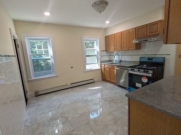 Available now! Recently updated 4 bed unit on Sumner Rd in Brookline, right around the corner from BHS and Brookline Hills. Open into a large foyer space which leads to a living room and four bright and sunny bedrooms. Tons of windows throughout with high ceilings and refinished hardwood floors. Living room features built in storage and a beautiful coffered ceiling. Brand new kitchen with new flooring, appliances, and counter tops. Bonus 1/2 bathroom off the kitchen with a new vanity and floors, as well as a spacious full bath with new tile. Private laundry (not coin op) in basement, one driveway parking space included in the rent. Terrific location convenient Brookline Village, Coolidge Corner, and Washington Sq. Easy access to Rte 9 as well as the D and C lines, Video tour available! Water included in the rent. Tenants responsible for oil (for heat), gas (for stove) and electric. Sorry, no pets.
