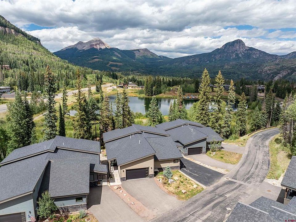 Gorgeous Modern Alpine Townhome on Twilight Lake Completed in 2021, this stunning lakefront townhome combines modern mountain living with a premier resort location. With all main living spaces and outdoor areas backing to Twilight Lake, you’ll enjoy year-round waterfront serenity and dramatic views of Engineer Mountain. Perfectly situated across from Purgatory Resort and steps from endless National Forest trails, this residence is a true outdoor enthusiast’s paradise—with easy access to hiking, biking, Nordic and downhill skiing, snowmobiling, and more. Inside, the open-concept kitchen, dining, and great room are designed for entertaining and capturing the views. The chef’s kitchen features granite slab countertops, contemporary backsplash, premium wood cabinetry, a spacious pantry, and stainless steel appliances, along with a center island and breakfast bar seating. The vaulted living room is filled with natural light from expansive windows and anchored by a cozy gas fireplace for après ski gatherings. Step onto the large Trex deck in summer and take in the mountain breeze while overlooking the lake. The main-level primary suite offers a spa-like retreat with a luxurious 5-piece bath—complete with soaking tub, custom tiled shower, and walk-in closet. Also on this level are the laundry room, powder room, and a spacious 2-car garage. The walk-out lower level expands the living space with a second family room and another fireplace, a second master suite with it's own private bath, a third guest bedroom a versatile bunkroom/office (this room does not have a closet so it doesn't technically qualify as a bedroom, although it fully functions as one), and a dual-sink full bath. Outside, the generous patio with a plumbed custom gas fire pit, 8 person hot tub adds another ~500 sqft of outdoor living. This home is being sold fully furnished right down to the kitchenware, it is completely turn-key for its new owners. Membership in DMMA, granting access to Purgatory Resort amenities: private shuttle service, year-round heated pool and hot tub, fitness center, and a private restaurant/lounge. This is a rare opportunity to own a modern lakefront home in a resort setting—perfect as a full-time residence, second home, or income-generating retreat. Don’t miss this extraordinary alpine getaway on Twilight Lake!