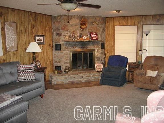 LAKEVIEW HOME on 2 replatted lots.  Very well-maintained home with 3 BR (one used as an office) and 2 Bathrooms.  Master has walk-in tub.   Galley kitchen with adjoining dining area.  Gas fireplace.   Flooring is new carpet and tile.  Two-car garage.  Nice shop area in basement, plenty of storage.  The windows and doors on back of the house all have views of the lake and valley.  Deck is partially covered, and open across the back of the house.  Great neighborhood, near Indian Hills Golf Course.  AR