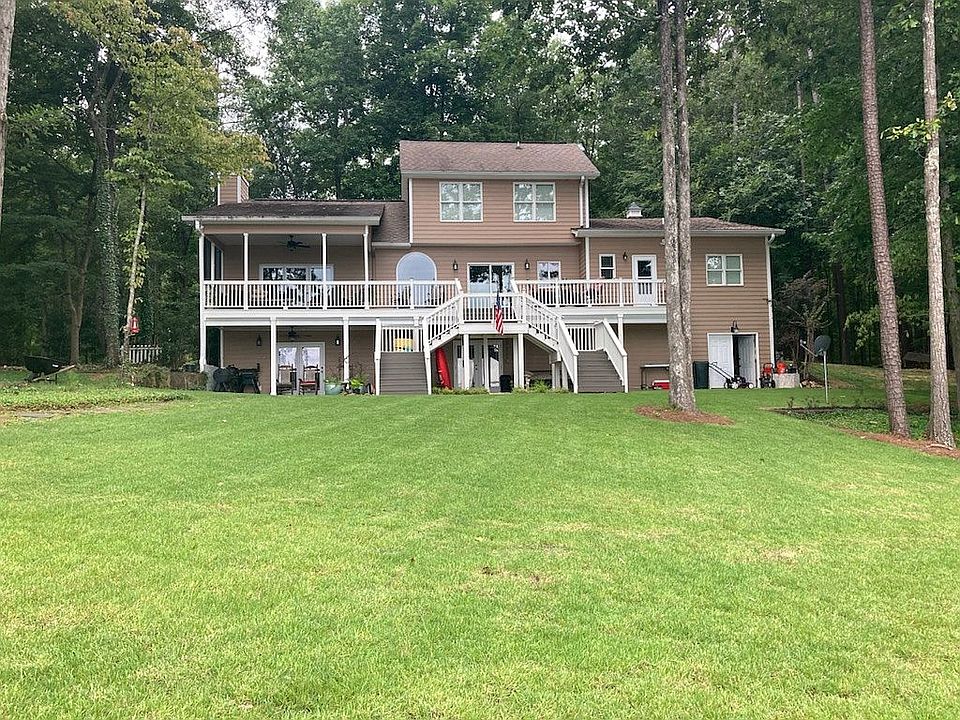 Without a doubt, one of the most beautiful lots on Lake Oconee. Lots 17 AND LOT 18 Martin Oaks SD. Deep water at dock and level to gently sloping lot in a great quiet neighborhood makes this property stand out from the others. Many improvements and upgrades. Interior features: New Paint, Trey and Vaulted ceilings. Entrance foyer, Gas logs in fireplace, Hardwood floors throughout, Walk in closets Kitchen pantry, Laundry room w/Washer and Dryer, 5 bedrooms: Main level, master and guest room Upstairs level, 2 guest rooms 5th bedroom/bunk room on terrace level, sleeps 8. 3 bathrooms: Upstairs, full bathroom with walk in shower Main level, Master bathroom with tub/shower combo and bath Terrace level: Full bathroom with walk in shower. 2 Car attached Garage. Terrace level includes living and game area with nearly new drop ceiling. This area includes a sleeper sofa, game area which includes ping pong table, regulation size pool table and the bunk room, 2 large smart TVs. Exterior: Back deck with a covered portion perfect for screened porch. Entire back deck has brand new under decking, 2 ceiling fans, and a day bed swing. New Sod yard lakeside with irrigation system. Firepit area 200 ft. water front. Very gradual slope/level lot. A grandfathered in beach area and sea wall. Boat Dock with 2 new covered slips, with new boat lifts, 2 jet ski lifts, 8 feet water at boat dock. All interior furnishings, appliances, Televisions, etc., with the exception of King Size bed in master and side board in Living Room, and a few personal decorative items to be identified at showing, is included in Purchase Price. Water toys, Pontoon Boat, 2 Jet skis, 2 paddle boards are available as an additional purchase $50,000.
