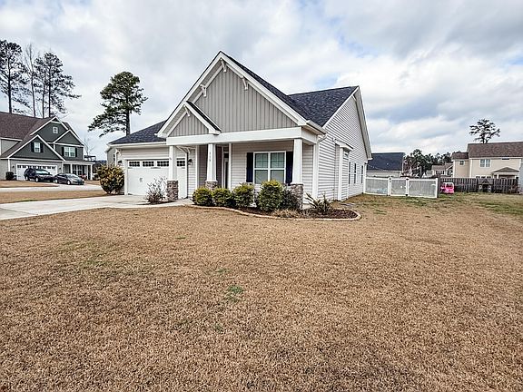 Discover this beautifully designed split-bedroom home, perfectly situated on a corner lot with a fenced yard for added privacy. Built in 2018, this home boasts an open-concept floor plan with elegant LVP flooring and plantation shutters throughout the main living areas.