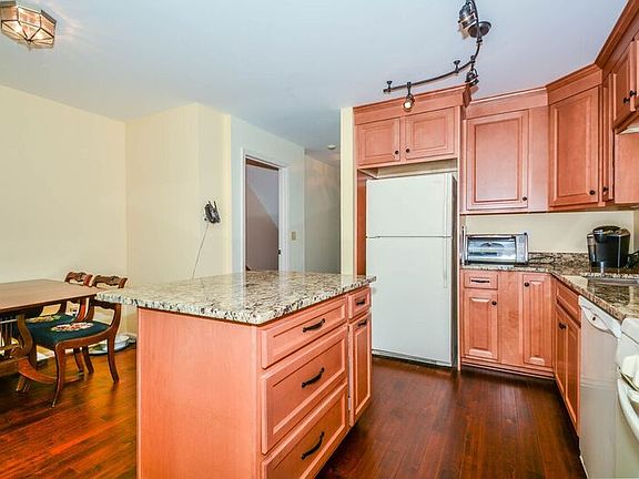Look no further, this is THE ONE! Lovely 2BR townhouse with garage at Tennis Plaza! Nice location in back of complex, tucked behind with wooded views. Updated kitchen in 2016 features stylish Birch Cabinets with toffee finish, granite countertops, and a Center Island! Kitchen has HWF and dining area that looks out to the deck pretty views. Updates include windows, slider done in '05, furnace, c/a, replaced in '04, Bay Window replaced in 2014. Updated FLAT ceilings on 1st floor, updated half bath with CT floor, new vanity and toilet. Livingroom with new HWF. Upstairs features Master Bedroom with high ceilings and double closets, 2nd BR with hardwood floors, textured plaster ceiling and crown molding, . Full Bath with new vanity, jetted AIR bath that vents to the OUTSIDE, not attic, tile floor. Laundry in unit in back of garage and all appliances included. Freshly professionally painted, and can close quickly.