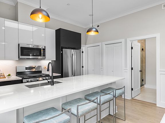 **Application Approved** Welcome to Winter Hill's newest development, 115 Thurston! Luxury three bedroom penthouse condo with skyline and hillside views! This central location off Broadway is a Walker's Paradise with a walk score of 90, less than a half mile to two Green line T's and seven miles to downtown. The sun-filled top floor features an open floor plan with skylights, big windows, 9 ft ceilings, custom paneled walls and crown moldings. The luxury kitchen features quartz counters, breakfast island, new stainless appliances including direct vent gas stove and pendant lighting. Two modern bathrooms, one in the primary suite and the other a full common bath. Convenience of in-unit W/D. Garage parking available $200/mo. Beautiful common areas with large brick rear patio and bike rack. Be the first to live in this exceptional apartment in vibrate Somerville with easy transit Garage parking available for $200/mo. Tenant(s) responsible for metered electricity and gas.