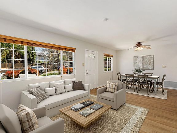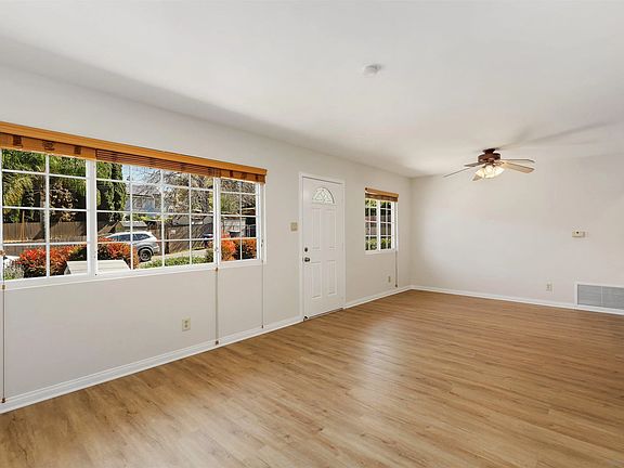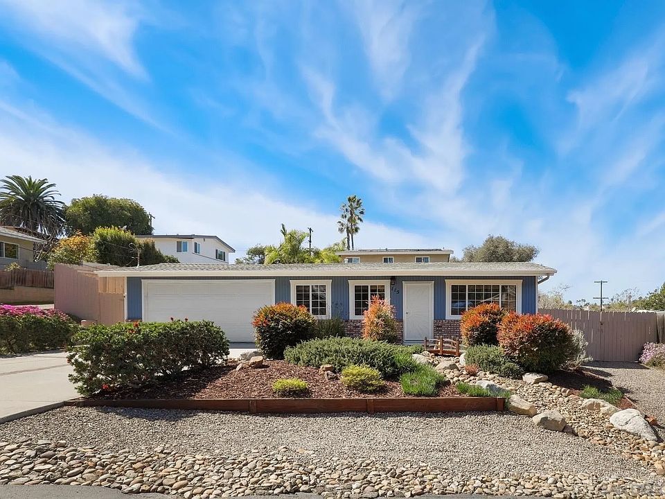 This is an incredible opportunity to own a beautifully updated, move-in-ready home that exudes charm and modern comfort. From the moment you arrive, you'll be greeted by a beautifully landscaped front yard and a freshly painted exterior that enhances the home's inviting curb appeal. Step inside to find soaring high ceilings and an abundance of natural light, creating a bright and airy atmosphere. The interior boasts brand-new luxury vinyl planks and plush new carpet in all bedrooms. New soft white paint throughout adding warmth and style to every room. The kitchen is a chef’s delight, featuring stainless steel appliances, elegant wood cabinetry with ample storage, and plenty of counter space for all your needs. Off the kitchen, two spacious bedrooms share a well-appointed hall bath with a walk-in shower. Just a few steps down, the primary suite offers a private retreat with an attached bathroom featuring a bath-shower combo, generous storage, and sliding doors leading to the outdoor patio. As an added bonus, enjoy a separate workroom/office in the garage. Southern California living at its best! The private backyard offers endless possibilities, with a covered patio perfect for outdoor dining, a spacious yard and a large storage shed. For added convenience, this home offers a two-car garage, an extended driveway, and RV parking. A new roof was installed in 2024. The home boasts an HVAC system and dual pane windows for year round comfort. There are many new upgrades so you can enjoy peace of mind without worrying about major expenses.