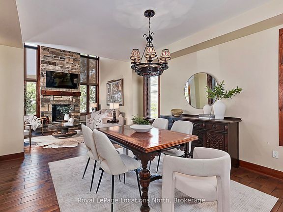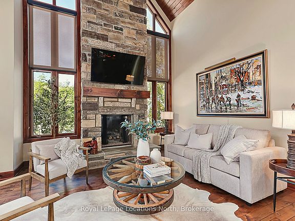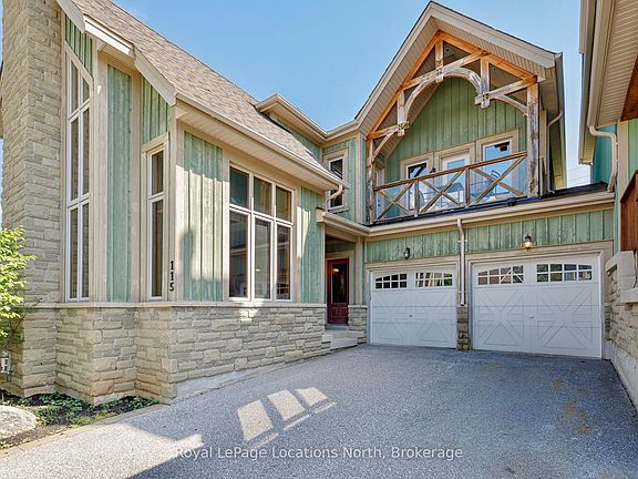 Welcome to 115 Venture Boulevard, ideally located in The Orchard at Craigleith - one of Southern Georgian Bays most sought-after ski-in/ski-out communities. This chalet offers unmatched four-season living with private trail and shuttle access, and is within walking distance to Craigleith and Toronto Ski Club, the Village at Blue Mountain, and the shores of Georgian Bay. The open-concept main level is designed for both gathering and relaxation, featuring a vaulted ceiling, gas fireplace, and expansive windows framing panoramic ski hill views. A loft overlooking the living area provides flexible space for a home office, media lounge, or potential for a fourth bedroom. The kitchen opens to a private backyard patio, backing onto a trail - ideal for summer barbecues and winter snowshoeing. Upstairs, three spacious bedrooms include a primary retreat with a walk-in closet, private balcony, and 5-piece ensuite. Large windows throughout bring in natural light and highlight seasonal views. The unfinished basement, with a rough-in for a bathroom, offers excellent storage and future development potential. A two-car attached garage adds convenience for vehicles and gear. Whether you're seeking a full-time residence or a weekend escape, this home delivers the ultimate ski-lifestyle experience, with a prime location that blends mountain living and year-round recreation.