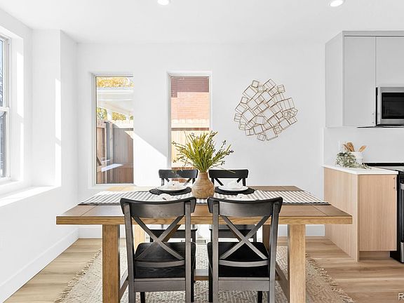 Urban sophistication fuses with historic charm in this modern townhome tucked in the heart of Baker. Situated just moments from Broadway’s diverse mix of dining, shopping, and entertainment, this three-story residence blends contemporary design with timeless appeal. The open-concept layout showcases high-end finishes, including luxury vinyl plank flooring. Expansive windows flood the space with natural light, while clean architectural lines create a sense of effortless flow. The kitchen boasts sleek quartz countertops, upgraded shaker cabinetry, and energy-efficient Samsung appliances. Upstairs, a dedicated rooftop deck invites moments of relaxation and entertaining with panoramic city views. Designed with sustainability and comfort in mind, this home offers three bedrooms, three baths, and a detached one-car garage — all within a boutique collection of five brick-clad residences that capture the essence of elevated city living in one of Denver’s most vibrant historic districts.