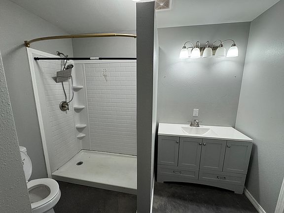 Each of the three bedrooms offers generous closet space and cozy layouts, while the two full bathrooms include stylish fixtures, modern vanities, and tiled shower surrounds for a clean, elegant look.