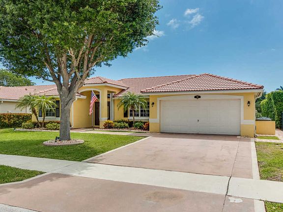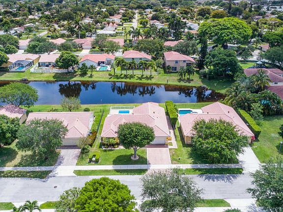 This Beautiful and meticulously maintained 3/2 split plan pool home is situated on a lakefront lot.This sought after Delray Beach area is nestled in a small gated community of only 57 homes and has low HOA fees. This home says welcome as soon as you enter the front door with many features/upgrades that include updated kitchen with granite and light oak cabinets, accoridan shutters, crown molding, vaulted ceilings, newer a/c, newer washer/dryer. Exterior of home was just painted last year. The updated kitchen overlooks the spacious family room that has pool and tranquil water views. The master bedroom has a sliding door that leads out to the pool/hot tub area. Hot Tub is covered by enclosure with awesome sun set views. Double sinks in master bath with separate shower and tub.