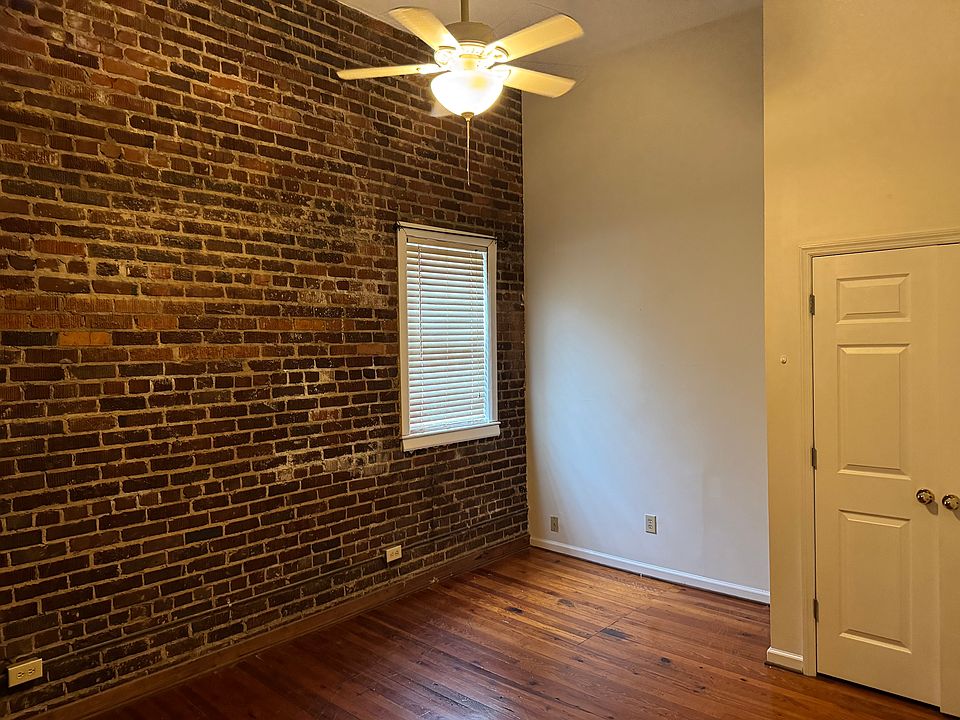 Historic modern industrial downtown apartment! Walking distance to downtown shops, restaurants, gym facilities, and night life. This charming one bedroom apartment features hardwood floors, exposed brick walls, in building laundry, and a fantastic view of the revitalized historic downtown area. The apartment is one bedroom and one bath with an open concept kitchen, dinning, and living area. Enjoy the privacy and security of this second floor interior space. Renters enter through a locked lobby and proceed to the second floor hallway to enter their respective residences. There is ample free parking outside the building. Rent includes water, sewer, and trash.