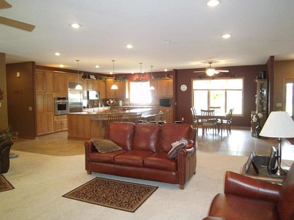 Enormous home w/quality built in.Wide open kitchen,dining area & great rm w/gas fireplace.Large sun rm off of the living rm,giant master suite w/2 walk in closets,whirlpool tub & low step shower.Spacious 2nd bdrm,custom tile shower,in floor hot water heat throughout the entire home,20x40 in ground pool,21x28 heated shop,heated 3 stall att. garage.Bsmt is ready for 2 more bdrms & a huge family rm. Call today, 563-299-8953