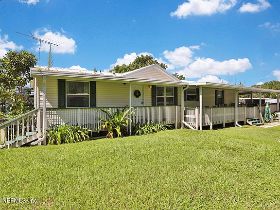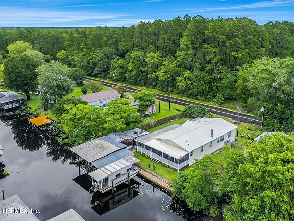 This spacious 3/2 with Fabulous views. Screened in lanai overlooking a deep water canal leading to Dunns Creek and the Saints John's River. This property offers a boat house with a 10,000 pound boat lift, floating dock ,fish cleaning station and storage room/shed. Artesian well with a new 2025 water pump. New 2025 water heater and pressure tank. New galvalume siding 2025. The Bonus room was upgraded with a sliding glass door.