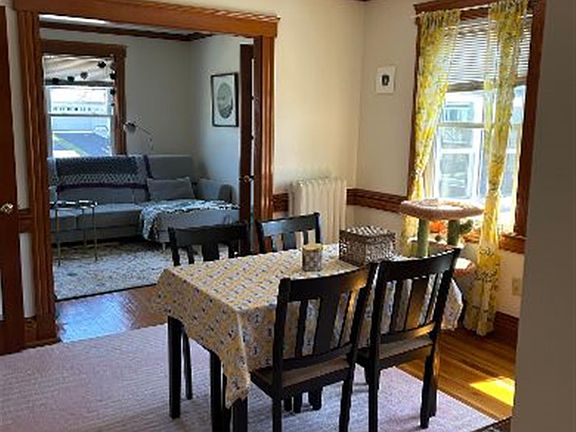 Sunny second floor apartment in two family home. Hardwood floors throughout. Two large bedrooms and also has a good sized study for home office. Eat in kitchen is recently renovated with new floor, new appliances and sink, and refaced cabinets. French doors. One bathroom - classic style but updated and in excellent condition. One off street parking spot is included and the street parking is easy. Very close to the commuter rail in West Medford Square where there are also lots of shops, restaurants, drugstore, bank, brewery, etc. Free laundry in the basement. Oil heat. Incredible value in gorgeous neighborhood with plenty of parks, charm, and public transit. (Reference #180598)