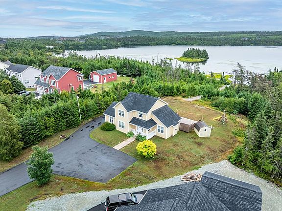 Enjoy Country Living Without the Commute! Surrounded by nature in one of Torbay's most sought after subdivisions, this custom-built home has been designed to maximize the views and access to Western Island Pond. The main floor family room (with propane fireplace) is warm and inviting with beadboard cathedral ceilings and a patio door leading to the oversized back patio. As you pass through the dining area and kitchen (with solid countertops and tile backsplash), you'll find a generous sized mud-room with extra storage capacity and laundry. The main floor also offers a separate living room and a full bathroom. For those with mobility issues, there is the added bonus of a main floor bedroom! This room also functions well as a guest room or home office. Hardwood stairs lead to the second level where you'll find 3 more bedrooms and the family bath complete with corner shower plus a whirlpool tub. Good mornings come easy when waking to your own private view of the pond from your bedroom balcony! The primary bedroom also features a walk-in closet. There is in-floor radiant heating throughout the main level. Outside you'll find two storage sheds, plenty of paved parking for multiple vehicles, and the most peaceful path to your own floating dock! Stainless steel appliances, washer & dryer are included. Roof shingles replaced in 2024. Septic pumped in August 2025. Lots like this don't come up often! Schedule your private viewing today!