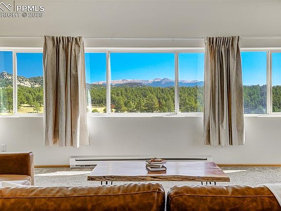As you approach this picturesque mountain retreat, set on over 11 acres, you’ll immediately be struck by mountain views and dramatic rock formations. The large, covered front porch invites you to sit and take in the peaceful surroundings. Stepping inside, you’ll be greeted by a wall of windows in the living room, where natural light floods the space, perfectly framing the Pikes Peak view. The cozy warmth of a pellet stove creates an inviting atmosphere. As you move through the home, you’ll find the oversized master bedroom—a true retreat—with an ensuite bathroom featuring a freestanding shower and a luxurious soaking tub, where you can relax and recharge. The large kitchen, adorned with beautiful hardwood floors, provides ample space for both cooking and entertaining, with plenty of room to gather and create lasting memories. Downstairs, you'll find a secondary living space. With it's own separate access, full bathroom, and additional guest bedrooms, family and friends can stay with peace and privacy. Outside, you’ll discover ramp access to the upper level, making it easily accessible. The paved driveway, fabulous for snow removal, leads to a spacious 3-car attached garage, along with an additional 1-car detached garage, providing plenty of space for vehicles and storage. Two sheds offer even more room for tools, hobbies, or outdoor gear, and the fenced yard includes a dedicated dog run, perfect for your furry friends to roam freely. Classic cedar siding and a brand new roof make this home attractive and reliable. Coveted southern exposure and low utility bills! With sensible covenants, this property offers the freedom to truly make it your own. Just a short drive from Florissant Fossil Beds National Monument, it blends the peacefulness of mountain living with the convenience of nearby attractions. This isn’t just a home; it’s a lifestyle waiting to be embraced. Take a tour today and experience the mountain views and tranquility that could soon be yours!