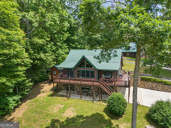 Enjoy Stunning Mountain Views and Serene Comfort This immaculate 3BR/3.5BA mountain retreat offers the perfect blend of full-time living and peaceful escape, comes FURNISHED. Take in breathtaking mountain views from the living room, dining room, and primary suite-where you'll also enjoy private driveway access and a spa-like ensuite bath. Start your mornings with coffee or a good book on the private porch off the master bedroom, or relax on the shaded front porch. The spacious, flowing floor plan features a dramatic stone, floor-to-ceiling fireplace, soaring cathedral ceilings, rich wood finishes, and expansive windows that frame the scenic views. The kitchen provides ample counter space and cabinetry, perfect for entertaining. Two additional bedrooms and a full bath are located upstairs. The lower level includes a full bath and a flexible den space currently used as a bedroom. Additional highlights include a large 2-car garage and oversized wrap-around decks ideal for soaking in the mountain life. Paved road access and a truly gorgeous drive lead you to this beautifully maintained luxury log home.
